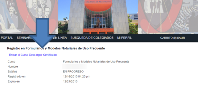 Si el curso se expiró, el certificado estará disponible para descargar una vez el Instituto de Educación Práctica certifique la participación parcial al Programa de Educación Jurídica Continua del Tribunal Supremo.