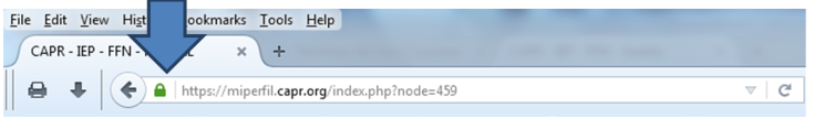Toda transacción de pago realizada a través de miperfil.capr.org se considera una transacción segura y garantizada por un certificado de seguridad. Al realizar cualquier transacción de pago usted podrá ver un candado en la parte superior de la pantalla, al lado de la dirección de nuestra página, similar a la ilustración siguiente: